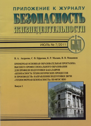 Andreeva V.A., Efremov S. V., Malayan K. R., Monashkov V.V. An approximate basic educational program of higher professional education for training bachelor profile "Safety of technological processes and productions"" of educational direction 280700 "Technosphere safety"